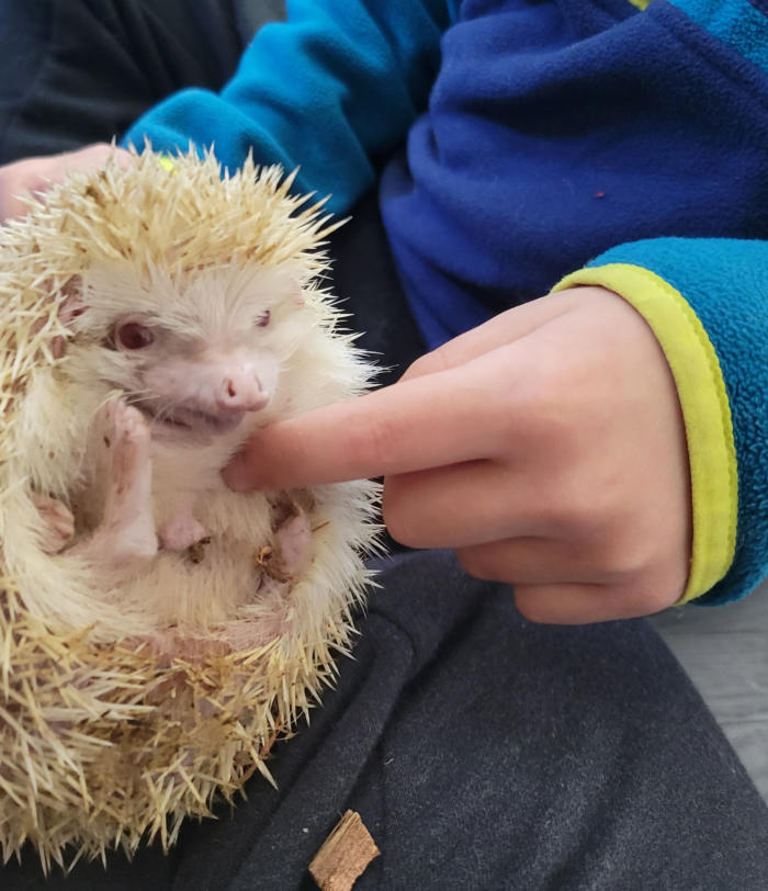 Cleo is my pet hedgehog. She likes to eat dead worms mixed with other stuff.If she was in the wild she would use her spikes to fight off animals that tried to eat her.She is nocturnal. She is awake in the night-time.She likes being by herself because it tells her that she is really safe.